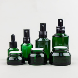 Bouteille en verre vert à épaulement incliné 15ml 30 ml 60 ml 100 ml 120 ml 200ml 300ml Bouteille en verre et pot en verre vert 15 g 30 g 50g